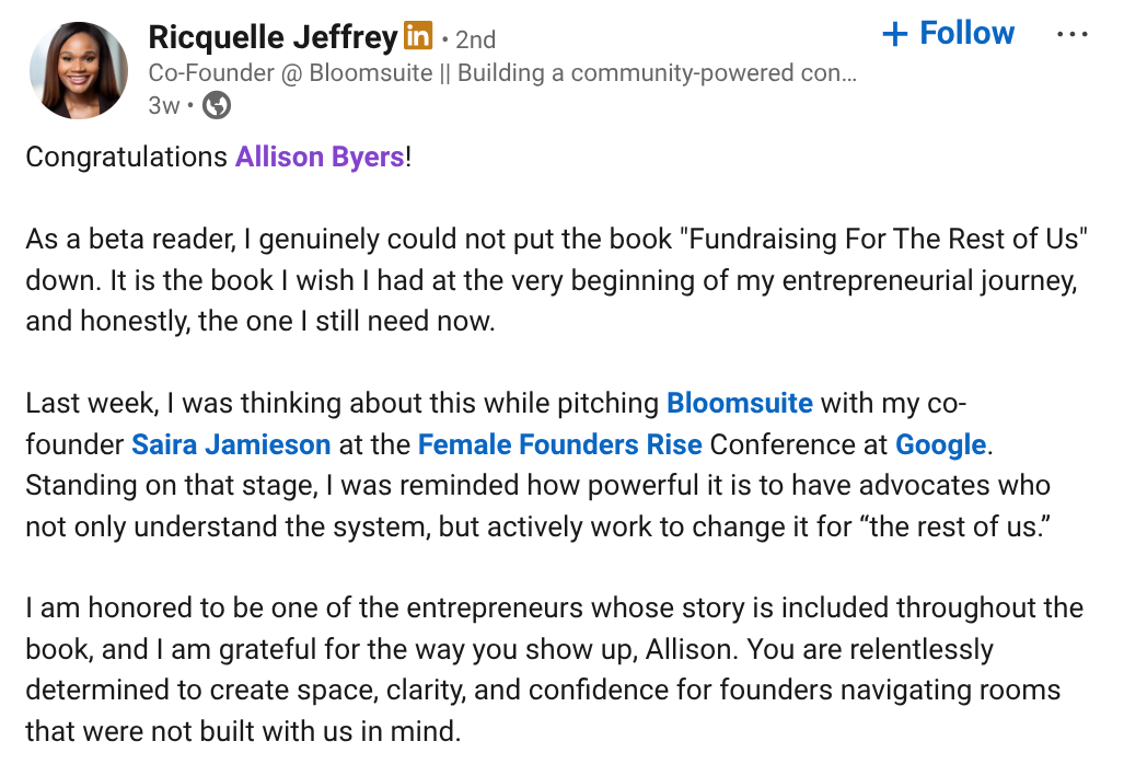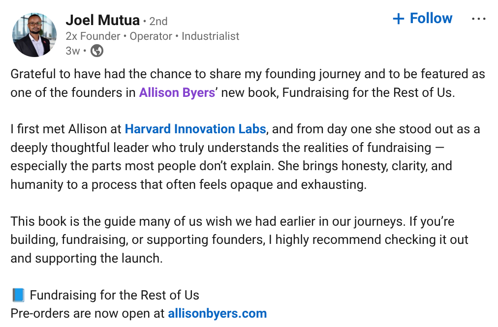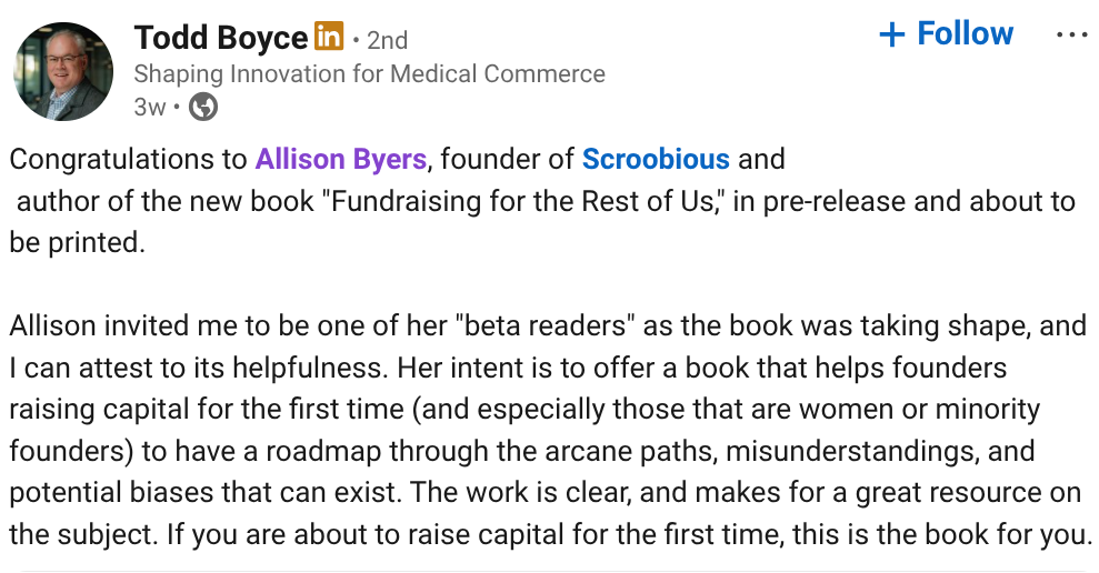 Fundraising for the Rest of Us is the honest, tactical guide that Allison Byers wished she had when she was raising millions for her own startups.